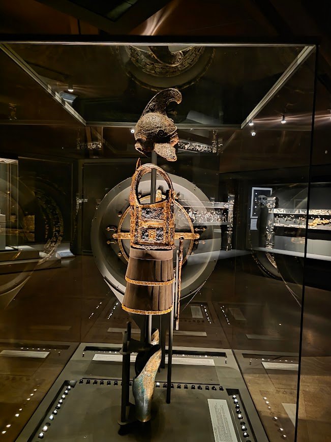 - Gold‑decorated Panoply of Philip II: The king’s iron and gold armor, the most complete classical panoply known, fitted to his frame and richly ornamented.