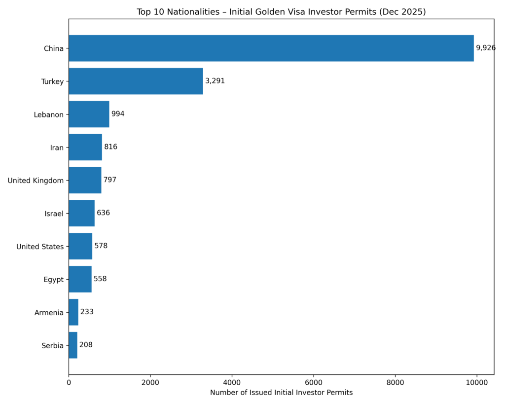 The Ministry’s December 2025 data show the following breakdown of issued initial investor permits: